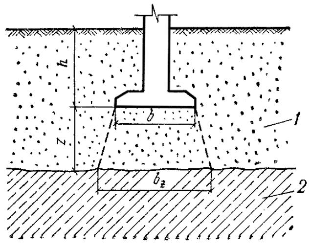 ширине фундамента , равной ширине зоны сжатия под подошвой фундамента (при