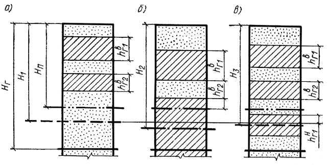 б) уменьшение глубины заложения фундаментов до пределов, допустимых по условиям деформаций и несущей способности оснований;
