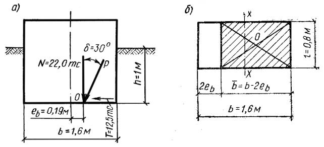 а) эксцентриситет расчетной нагрузки не превышает одной трети ширины фундамента в плоскости опрокидывающего момента