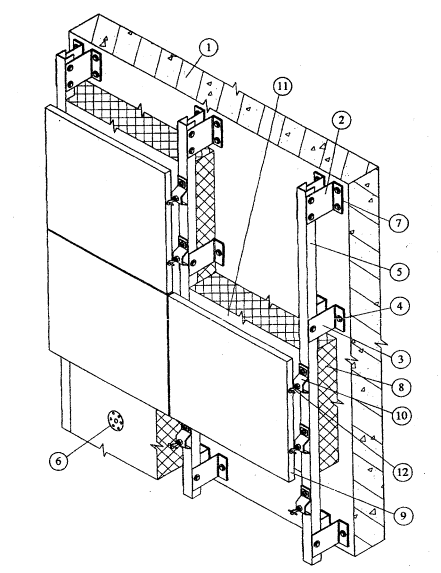 Рис. 3.2. Фасадная система "Стоун-Строй" с облицовкой плитами из природного камня (вертикальное крепление).