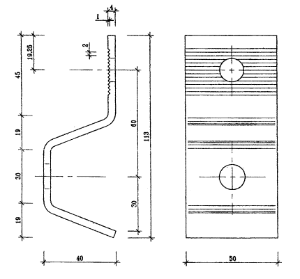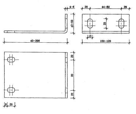 Кронштейны отличаются длиной консольной части, что позволяет применять слой утеплителя разной толщины, зависящей от коэффициента теплопроводности применяемых минераловатных плит, а также материала и толщины наружных стен. В системе приняты кронштейны с длиной консольной части от 40 до 200 мм. Толщина кронштейнов от 4 до 6 мм (рис. 3.3-3.4).
