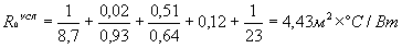 δi, λi - толщина м и коэффициент теплопроводности Вт/(м°С), утеплителя i-го участка ограждающей конструкции;