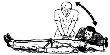 У пострадавшего, находящегося в бессознательном состоянии, может быть рвота. В этом случае следует повернуть его голову набок. Может наступить также удушье вследствие западания языка. В такой ситуации необходимо выдвинуть нижнюю челюсть пострадавшего вперед и поддерживать ее в таком положении, как при проведении искусственного дыхания (рис. П. 18.9.).