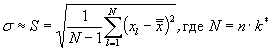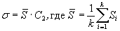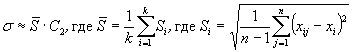 Оценку σ получают как среднее арифметическое k значений Si (5-я колонка) умноженное на поправочный коэффициент С2 (табл. 1)