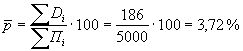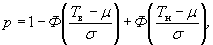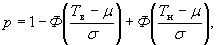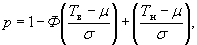 2) определяют вероятную долю дефектной продукции, р,