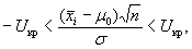 Uкр, -Uкр - критические значения, которые для статистического регулирования обычно устанавливают равными +3, -3. Отсюда получаем: