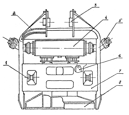 5 - ложеприямокопатель; 6 - стыкующая балка; .7 - ходоуменьшитель; 8 -