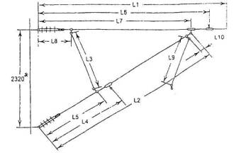 Примечание. Принят следующий диаметр труб: горизонтальная и наклонная - 60 мм, подкос - 42 мм, основной фиксатор - по поз. 1,4,5,6,8,9,10,11,15,18,19 - 42 мм, по поз. 2,3, 7,12,13,14,16,17,20 - 50 мм.