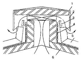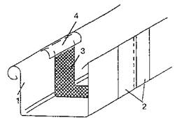 1 - желоб коробчатого сечения; 2 - две медные полосы; 3 - полоса из вулканизированного неопрена; 4 - медная покрывающая полоса