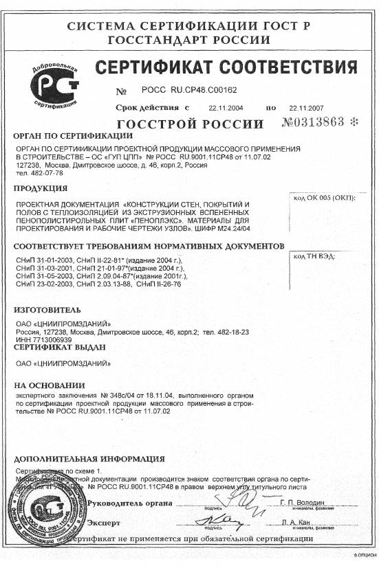 ЭКСТРУЗИОННЫХ ВСПЕНЕННЫХ ПЕНОПОЛИСТИРОЛЬНЫХ ПЛИТ «ПЕНОПЛЭКС»