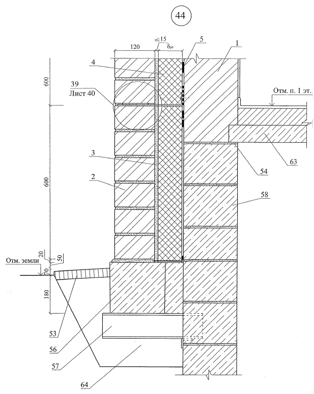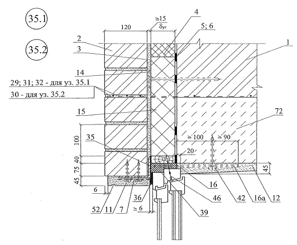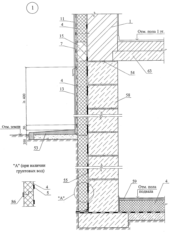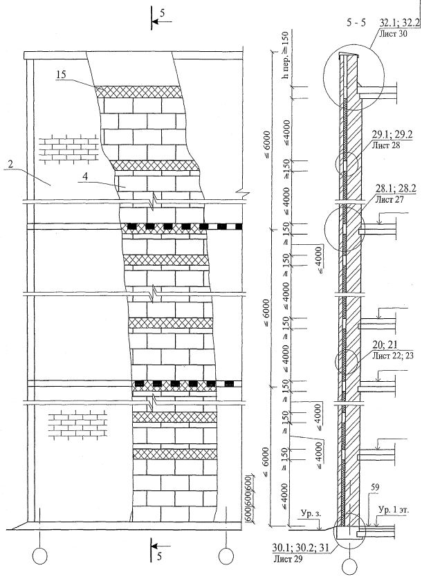 стены несущие или самонесущие из штучных материалов (кирпич, камни, бетонные блоки) или монолитного железобетона;