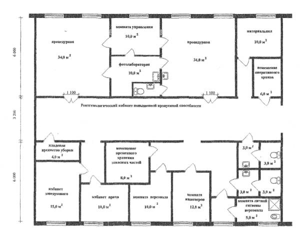 1.6. Состав и площади помещений отделений функциональной диагностики определяется заданием на проектирование. Набор помещений для стационаров зависит от профиля палатных отделений, для консультативно-диагностических центров - от специализации кабинетов врачебного приема.