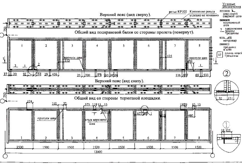 - группа 4 - трещины в нижней зоне стенки балки (как правило, в зоне опорного узла, в зонах заводского или монтажного стыков);