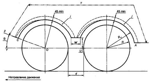 4.2.1.1 Грязезащитный кожух должен охватывать зону непосредственно перед шиной (или шинами), над ней и позади нее следующим образом: