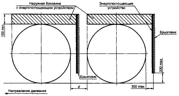 4.1.2 Система защиты от разбрызгивания должна состоять из грязезащитных кожухов, брызговиков, наружных боковин и включать устройства для уменьшения разбрызгивания.