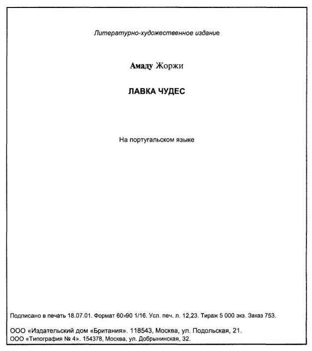 6.12 В издании, выходящем не на русском языке, перед надвыпускными данными на языке издания на русском языке приводят надзаголовочные данные, подзаголовочные данные, типовое имя издателя, почтовый адрес издателя (редакции) и указывают язык основного текста издания. Заглавие издания, тематические наименования издательств и организаций, имена учредителей и издателей, являющихся физическими лицами, приводят в транслитерированной форме.