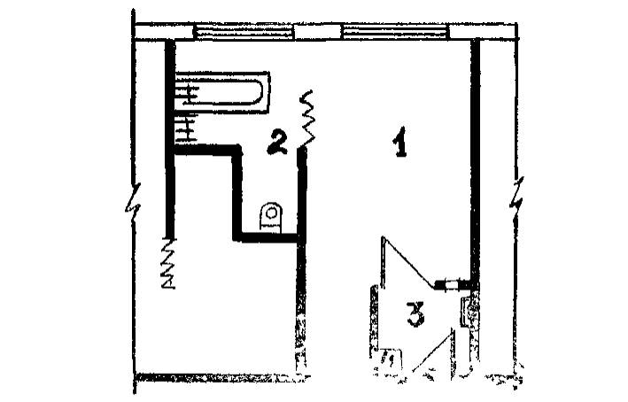 Рис. 6 "Палата со шлюзом" 1 – палата; 2 – шлюз; 3 – уборная; 4 – вход из коридора отделения