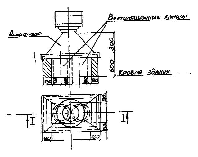 6.3. Боксы и полубоксы, а также все кабинеты и другие помещения этих секции должны быть оборудованы системой гравитационной вытяжной вентиляции. Гравитационная система вентиляции рассчитывается на наружную температуру ±0°С с установкой дефлектора (рис. 7).