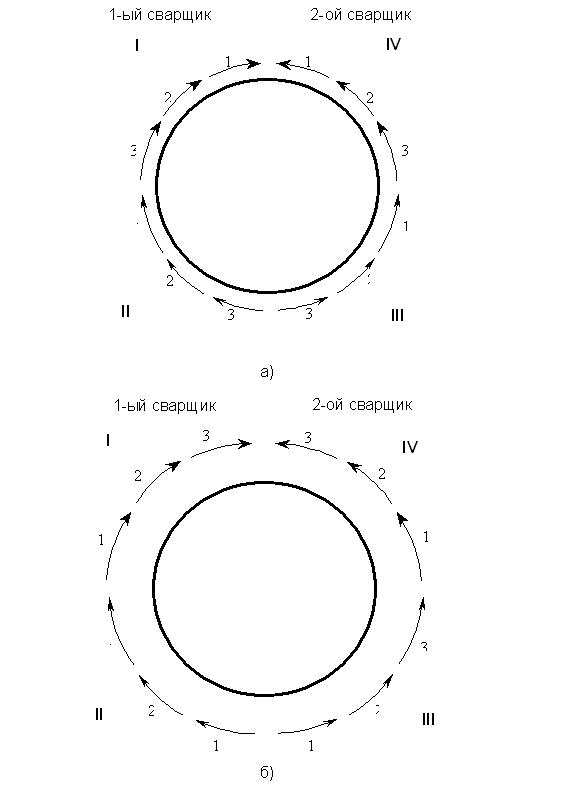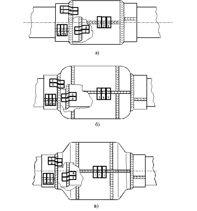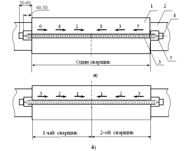 Сварка продольных стыковых соединений муфты (рисунок б) |