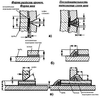 Сварка кольцевых угловых соединений муфты с кольцами (рисунок в) |