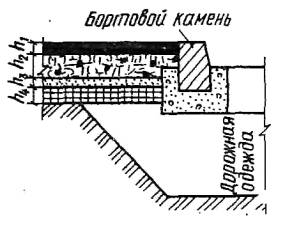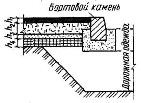 При удельном притоке воды в сутки более 70 л на 1 м2 проезжей части под бортовым камнем устраивают дренаж мелкого заложения из труб D 50 или 100 мм с дренажной обсыпкой (рис. 1).