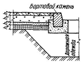 h1 - монолитный цементобетон M=400 кгс/см2 по ГОСТ 8424-72 или сборные бетонные плиты по ГОСТ 17608-81;