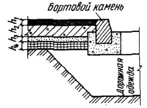 h2 - щебень, уложенный по принципу заклинки (известняковый или шлаковый), М=400-600 кгс/см2.