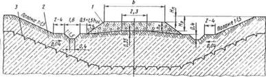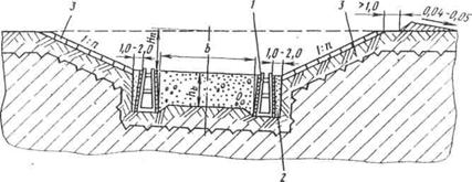 подготовкой искусственного основания сооружений посредством предварительного оттаивания грунтов основания и последующего улучшения их строительных свойств, устройства подсыпок, замены слабых и пучинистых грунтов дренирующими и т. д.;