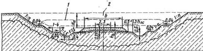 русла - каменную наброску (песчаник) со средним размером камня d =