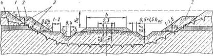 По табл. 5 находим υд = 2,55 м/с. Для определения расчетной плошали энного сечения потока принимаем глубину на выходе: