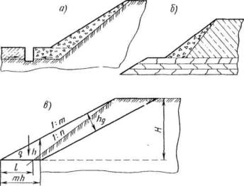 m0 - заложение естественного откоса грунта; g-ускорение силы тяжести;