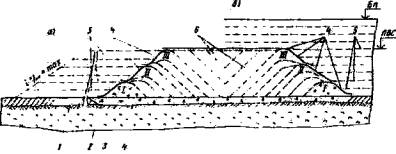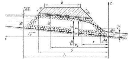 высоту фильтрующей части насыпи в верхнем бьефе: