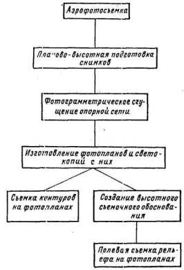 Комбинированной (контурно-комбинированной) съемкой называют сочетание аэрофотосъемки с наземной, применяется она в районах со слабовыраженным рельефом. Существенной особенностью этого метода съемки является то, что ситуация плана создается фотограмметрической обработкой аэроснимков, а рельеф - наземной съемкой на фотопланах, причем съемка, рельефа несколько упрощается, так как на фотоплане видны отдельные его формы.