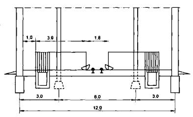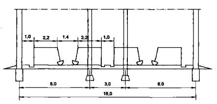 2.1.8 Более высокую эффективность расширения действующих свиноферм за счет увеличения плотности застройки обеспечивает блокирование существующих зданий свинарников. Это наиболее экономичный способ из известных решений. Он заключается в том, что каждые два параллельно расположенные здания объединяют в общий блок за счет встройки между ними дополнительного помещения. Продольными стенами нового помещения служат стены существующих свинарников. Для ограждения его необходимо установить внутренние опоры, выложить торцовые стены и выполнить покрытие (или только покрытие и торцовые стены). Например, два отдельно стоящих здания шириной 12 м, длиной 72 м, расположенных на расстоянии 12 м друг от друга, при реконструкции можно объединить в моноблок размерами 36×72 м. Новые встроенные помещения имеют размеры 12×72 м.