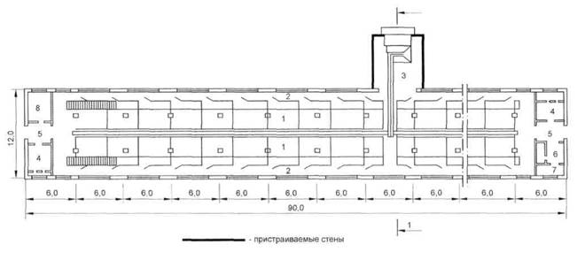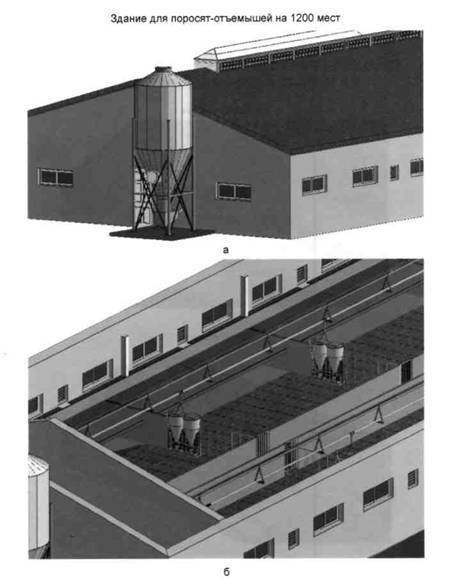2.1.7 Для увеличения производственных площадей существующие здания для содержания свиней обычно удлиняют или устраивают боковые пристройки, примыкающие торцами к фасадным стенам. Эти широко известные способы позволяют получать дополнительные производственные площади с меньшими капитальными затратами по сравнению с новым строительством.