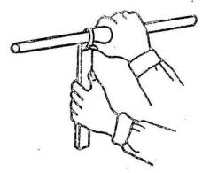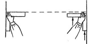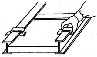 2.11. Работы по подготовке деталей рабочего каркаса выполняют в следующем порядке: насаживают "наездники" на верхнюю полку направляющих профилей (рис. 2); вставляют в них и загибают скобы-подвески. При креплении скобы-подвески ее сгибают под прямым углом, затем заводят под "наездник" конец скобы и загибают его плоскогубцами (рис. 3).