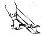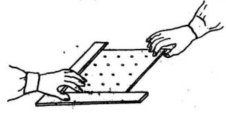 2.16. Плиты АГШТ подают к рабочему месту в заводской упаковке вертикальным транспортом. Цвет и оттенок плит проверяют сравнением с принятым эталоном. Форму и размеры плит проверяют с помощью шаблонов (рис. 8). При необходимости плиты обрезают на станке или ножовкой (рис. 9). Отобранные и отсортированные плиты складывают в ящики.