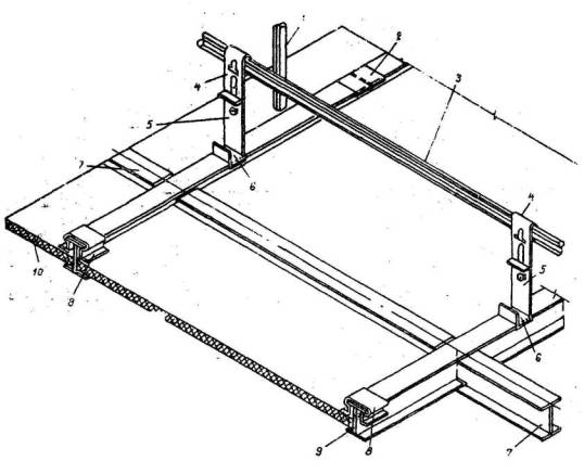 1.2. Подвесные потолки применяют в зданиях культурно-бытового и общественного назначения с целью улучшения декоративных и акустических условий внутри помещения, а также для использования пространств между потолком и перекрытиями для прокладки инженерных коммуникаций.