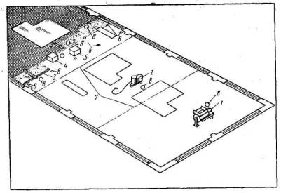 Устройство мозаичного покрытия пола с прокладкой жилок и по заданному рисунку