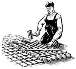 подготовки - выравнивающего слоя, образующего жесткую шероховатую поверхность, точность которой зависит от материала облицовки; для деревянных поверхностей подготовка состоит из деревянных досок небольшой ширины, по которым крепится слой толя, затем проволочная сетка, на которую уже наносится цементный раствор, являющийся подготовкой;