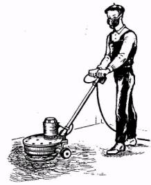После полного отвердения нанесенной шпаклевки на следующий день приступают к шлифовке поверхности пола. Шлифовку выполняют с помощью мозаично-шлифовальной машины шлифовальными камнями с зернами № 46 или 60. Шлифовку производят насухо, без смачивания поверхности водой. Труднодоступные места подшлифовываются шлифовальным камнем в обойме вручную. После шлифовки с пола тщательно удаляют пыль половой щеткой.