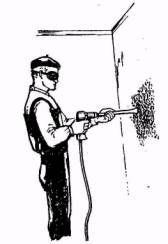 После работы необходимо промыть всю систему, очистить компрессор и бачок от пыли и осевшей мастики, разобрать и промыть краскораспылитель и шланги, все детали протереть насухо и вновь собрать. Помещения, где ведутся работы, должны быть оборудованы хорошей вентиляцией.
