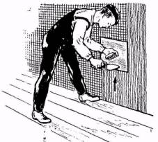 Учащиеся, занятые в заготовительной мастерской приготовлением колеров и составов, должны быть снабжены защитными очками с чешуйчатой оправой и резиновыми перчатками.