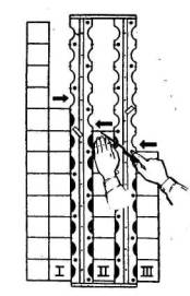 Весь комплекс отделочных работ принято вести поточно-цикличным методом, при котором работы выполняются одним или несколькими потоками одновременно, с ритмичным переходом с одной захватки на другую. На данной захватке выполняется одновременно цикл отделочных работ, связанных между собой и совмещаемых с общестроительными, санитарно-техническими, электромонтажными и другими работами.