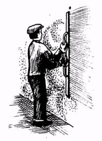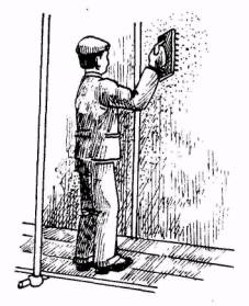 ОЧИСТКА ПОВЕРХНОСТЕЙ ОТ ПЫЛИ И НАПЛЫВОВ РАСТВОРА; 3 мин; Ш1 и Ш2; кельма, молоток, кисть-макловица, ведро. Штукатуры Ш1 и Ш2 очищают поверхность от пыли, наплывов раствора и др. дефектов |