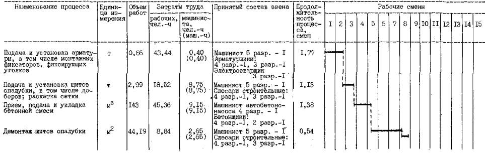 Схема раскладки щитов опалубки и бетонирования плиты дана на листах 8 - 9. Мероприятия по уходу за бетоном в период набора прочности, порядок, сроки их проведения, контроль за выполнением этих мероприятий, демонтаж опалубки осуществляют в соответствии с требованиями СНиП 3.03.01-87.