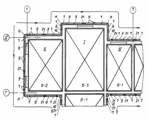Необходимый комплект опалубки обеспечивает одновременную работу на I, II и III (лифтовая шахта и лестничная клетка) захватках (рис. 3).