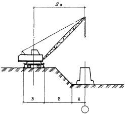 Максимальное расстояние от оси движения крана до дальней точки подачи материалов и конструкций определяется его технической характеристикой; минимальное - условиями безопасности работ по таблице 3 п.3 СНиП III-4-80*.