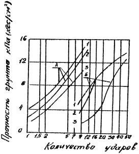 Прочность грунта определяется ударником У-1. Порядок пользования ударников У-1 и графики для определения прочности грунта приведены в приложении 2.