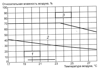 1 - недостаточная влажность; 2 - допустимый диапазон влажности; 3 - избыточная влажность